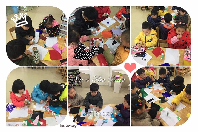 今天我们欣赏了大师的彩纸拼贴作品,我们也开始动手制作啦!瞧!桌子上不仅材料丰富,而且我们的创意也是无限大的哦!