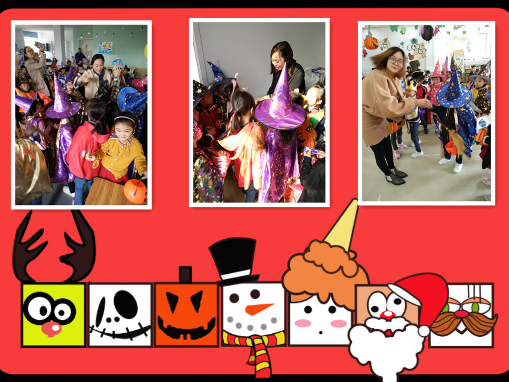 10月31日,我们迎来了万圣夜。幼儿园里挂上了南瓜灯、气球,到处洋溢着节日的气氛。这天小朋友们一个个盛装装扮来上幼儿园啦!老师给孩子们讲述了万圣节的习俗,还带小朋友们去各班级讨糖,“不给糖,就捣蛋!”孩子们欢声笑语,度过了快乐的万圣节!